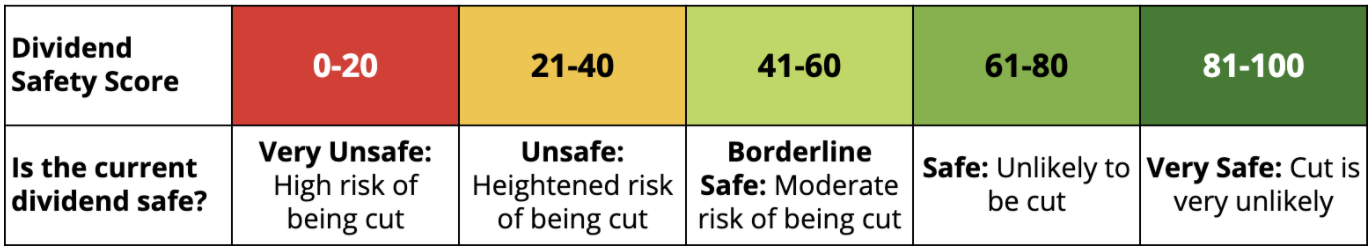 Before diving into the results of our study, it’s worth quickly reviewing our five Dividend Safety Score buckets: