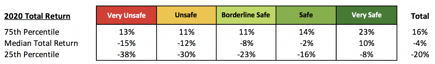 Even if a stock started 2020 with a Safe rating and was later downgraded to Unsafe in response to the pandemic, it would remain in the Safe category below for the purposes of this study.